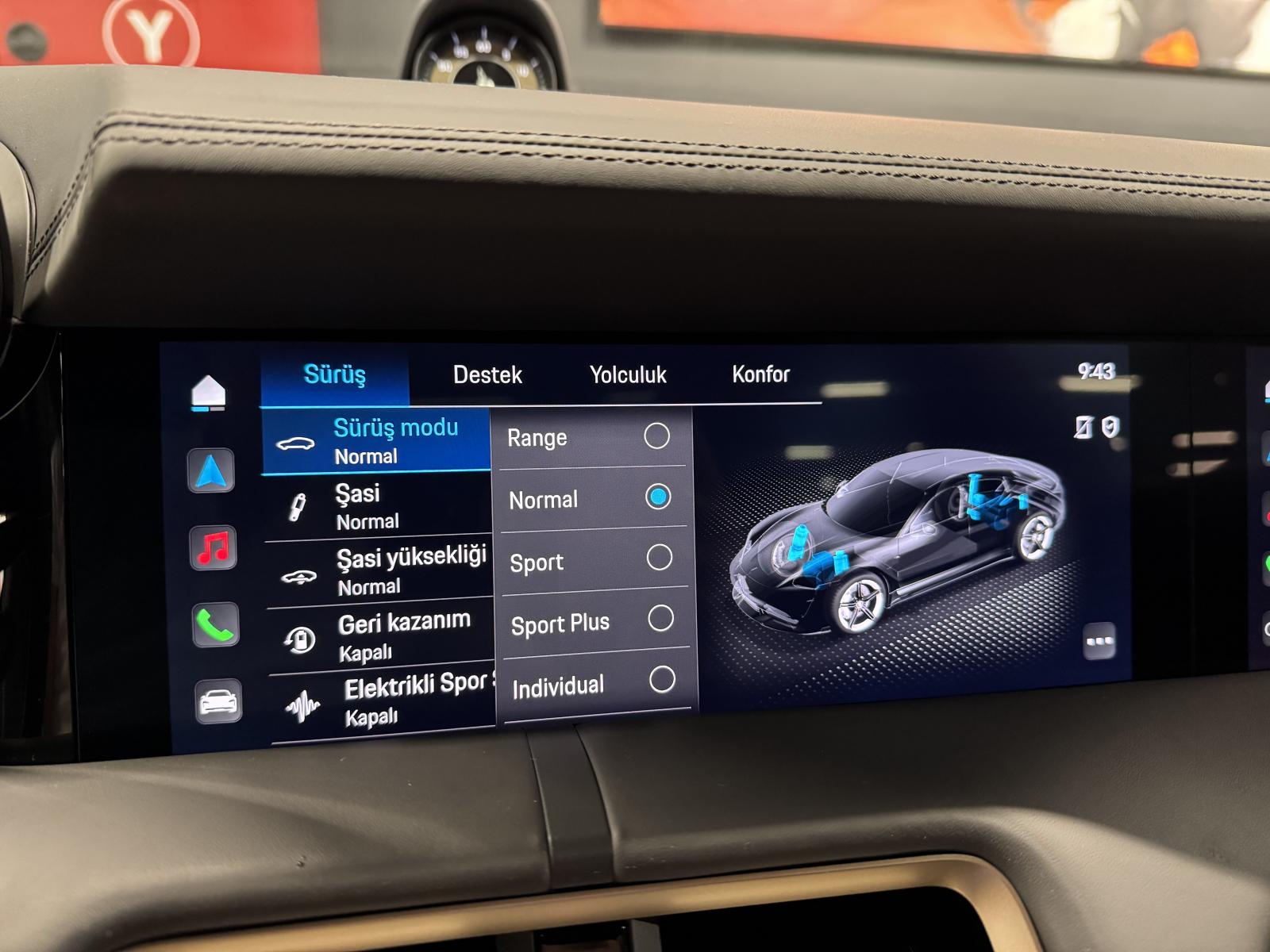 -ELEKTRIKLI HAVA KOMPRESORU-HIZA DUYARLI DIREKSIYON-IYONIZER KLIMA -ELEKTRIKLI SARJ KAPAGI-PANORAMIK TAVAN SISTEMI-KOLTUK HAVALANDIRMA (ÖN)-KONFORLU ERISIM-ELEKTRIKLI KATLANIR AYNALAR-SARJ KABLOSU(MODE3)-SPORT CHRONO PAKET -ÇAKMAK VE KULLUK PAKETI-ISI POMPASI-KONTROL UNITESI VE ARAÇ ARA KABLO(7,5 METRE)-BORDO EMNIYET KEMERI-PORSCHE ELEKTRONIK SPORTIF SES-ACCENT PAKET(NEODIM)-YOLCU EKRANI-GERI DONUS KAMERASI(ÖN VE ARKA PARK SENSORU ILE)-4 BOLGE KLIMA -SARJ UNITESI DOLABI-MOBIL SARJ CONNET-HAFIZA PAKETI 18 YONLU ADAPTIF SPOR KOLTUKLAR-BAGAJ PAKETI-SİYAH(PARLAK)DEKOR ŞERİTLERİ-ISIK PAKET-ISIYA VE SESE KARŞI YALITILMIŞ CAMLAR- MENZİL: 381 KM